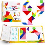 Travel Tangram Puzzle Car Game Magnetic Pattern Blocks Road Airplane Trip Essentials Activities Montessori Educational Toys Brain Teasers Book for Age 4-8 Kids Boys Girls Toddler (240 Solution)