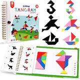 ★ENVIRONMENTAL PROTECTION MATERIAL: The Travel Tangram Game made of environmental protection material. Non-toxic foam and paper, no harmless or sharp edges, soft texture which is very protective and safe. The tangram's bottom is magnetic, strong and durable, so there is no worry about mess and loss.