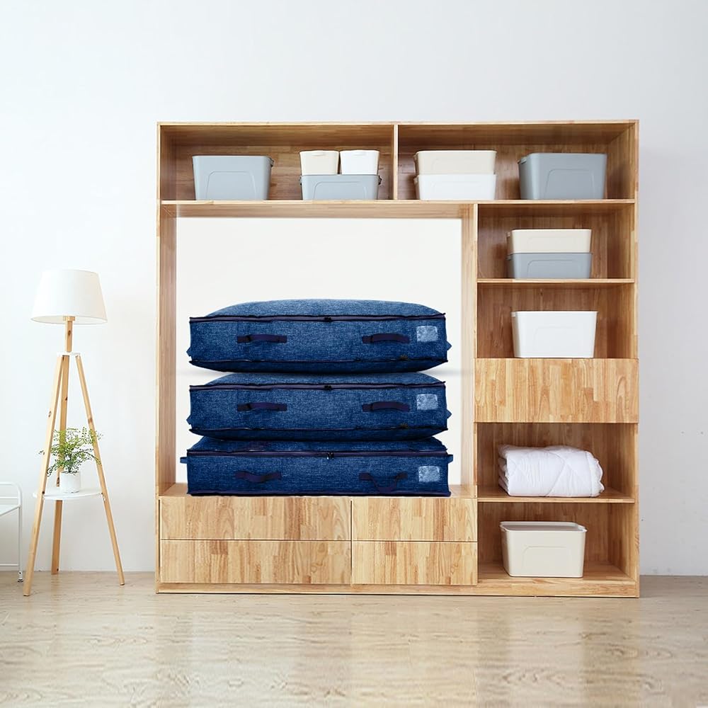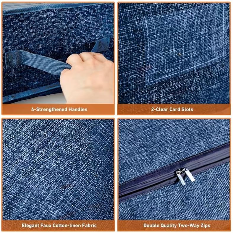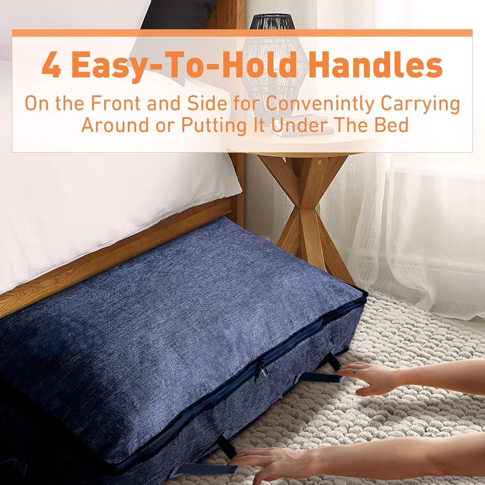 90L Under Bed Storage Containers, Large Capacity Blanket Storage Bags with Reinforced Handle, Organization and Storage for Comforters, Sheets, Clothes, Bedroom, College Dorm, Grey (90L*2PCS, BLue)