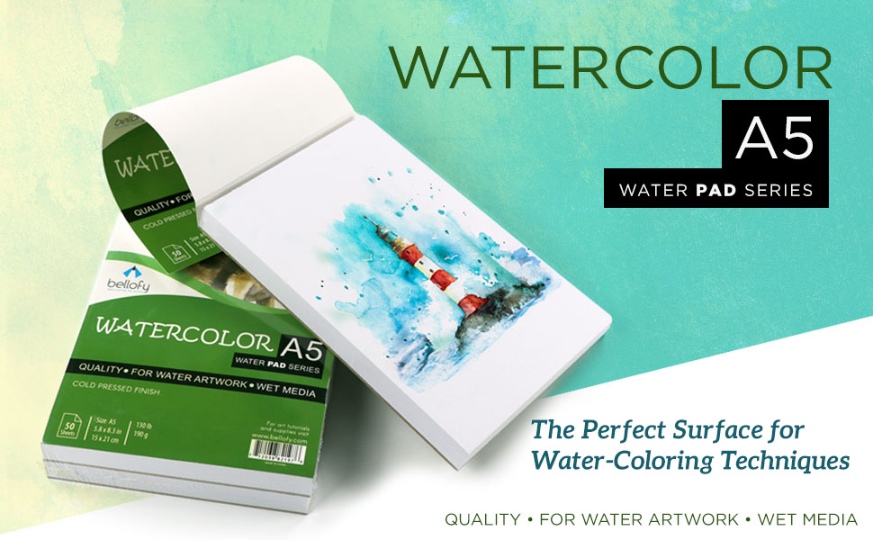 Bellofy Water Coloring Paper Journal - Painting Paper for Kids w/Cold Press Watercolor Paper Finish - 5.8x8.3 in - 130 IB 190 GSM - Watercolor Paper Kids & Artists Will Love - Art Paper for Wet Media