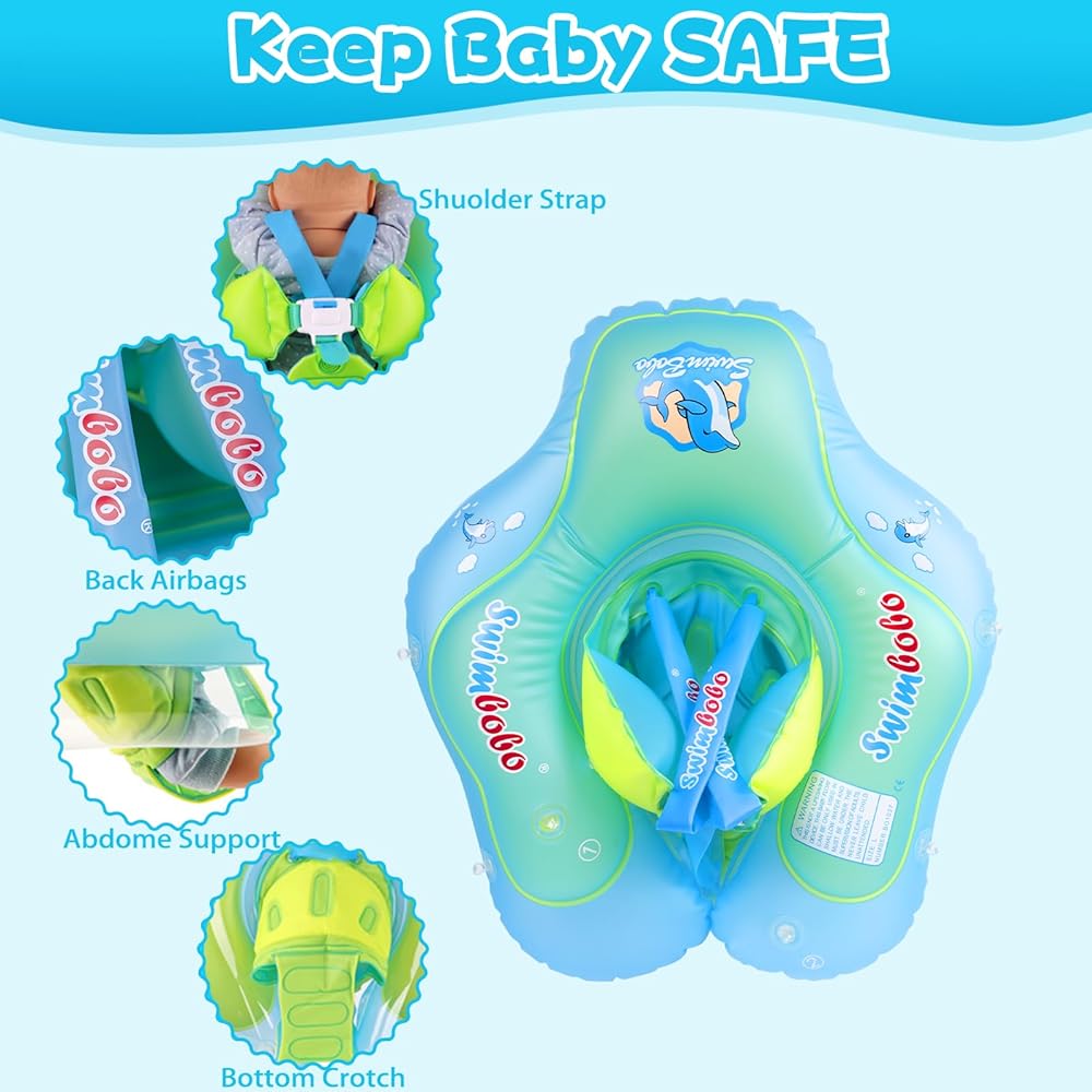 【Baby-Safety Material】- The infant pool float is made of durable leak-proof environmental PVC material. The sponge bottom support and widened seat belt make it comfortable and friendly to baby's skin; The one-press security buckles-lock and bottom support ensure that the baby paddles freely without slipping out. This baby floatie is designed for toddlers aged 3-36 months.