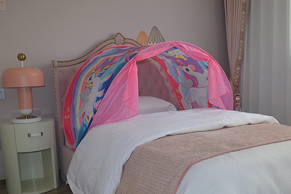 This Fairy Vase Tent is an adorable gift for all Girls. Fashion and mesh windows provide ventilation and easy viewing for supervision. Fast and easy set up/breakdown with no tools required. The lightweight tent with removable roof is great for indoor or outdoor use. Its small size is easy to fit in compact home or kids room. The playtent can be folded flat for convenient storage when it is not in use. Comes with a compact zippered storage bag, lightweight for convenient carrying.