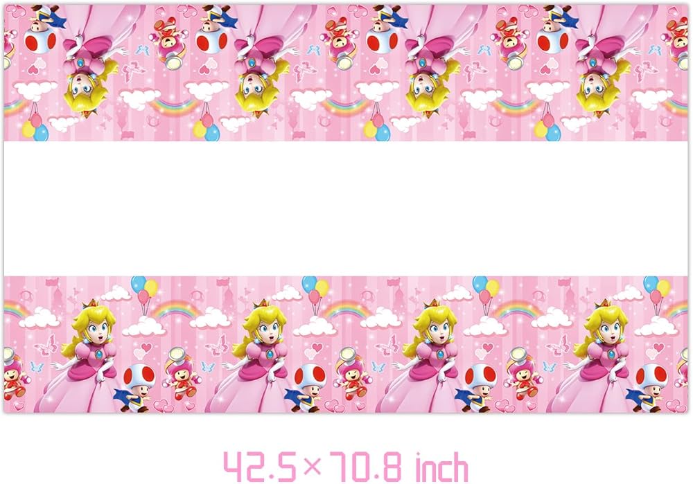 Princess Peachs birthday plastic table cover measures 70X42 inch, rectangular.Ideal for boy children's birthday parties,baby shower, celebrations.