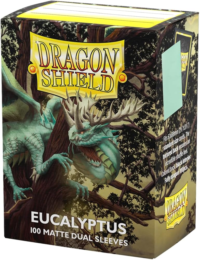 The glowing embers of battle, kindled by conflict. Dragon Shield Dual Matte sleeves. Fully opaque sleeves with a black interior, an elegant backdrop for black bordered cards. Clear front and a textured matte back. The sturdy cardboard box fits 75+ single sleeved cards or 65+ double sleeved cards. Every box has a label on the top for personalization and organization. Amazing card sleeves for TCGs like MTG, Pokemon, Flesh & Blood or Digimon! Sleeve Material PVC-free polypropylene sleeves, no acid. Archival safe. Sleeve Quality 120 μm quality thickness. Sleeve Size For Standard sized cards measuring up to 63x88 mm's (2½"x3½").