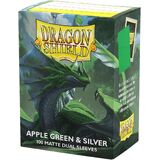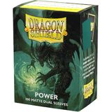 Dragon Shield Dual Matte sleeves. Fully opaque sleeves with a black interior, an elegant backdrop for black bordered cards. Clear front and a textured matte back.