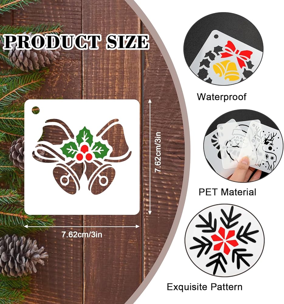 30pcs الإستنسل عيد الميلاد القابلة لإعادة الاستخدام لطلاء الطلاء DIY قالب الحرف مقال للطلاء لزينة عيد الميلاد DIY على جدار الخشب ديكور القماش 3 × 3 بوصة