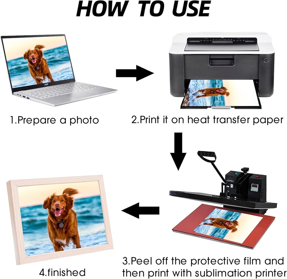 Metal material: each sublimation photo blanks are made of aluminum plate,after many times polishing process,the surface is smooth and the printed image is clear.Its thickness is 0.45mm (others are 0.22mm),strong and not easy to bend,durable and non-fading.