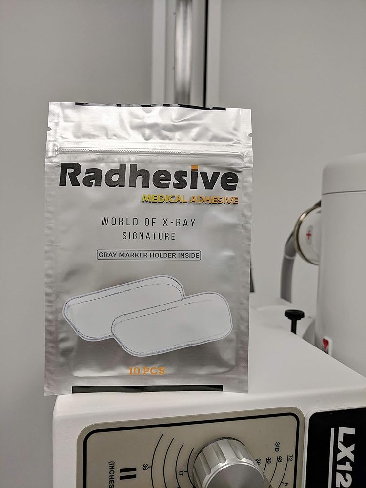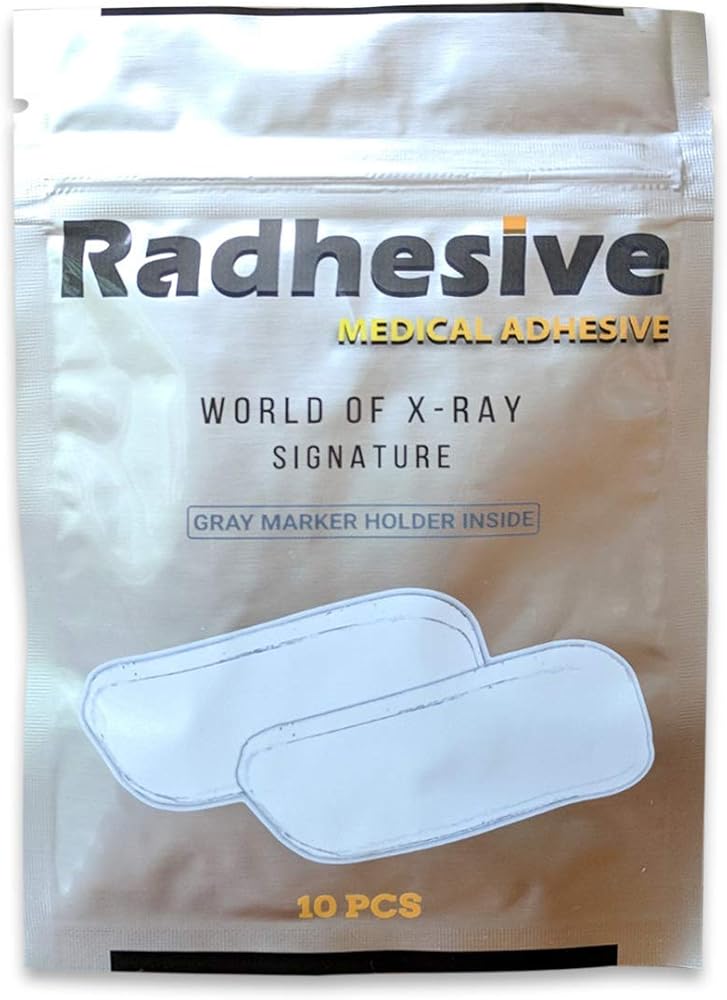 RADHESIVE 10PCS X-Ray Marker Adhesive Strips with Gray X-Ray Holder, Extra Strong & Sticky, Heavy Duty, Washable & Reusable Medical Adhesive for Radiologists & Medical Professionals, by World of Xray