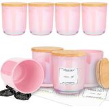 8 Pack, 10oz Iridescent Candle Glass Jars for Making Candles, Thickened Candle Containers with Bamboo Lids and Sticky Labels, Bulk Candle Vessels for Hand Candle Making DIY Craft