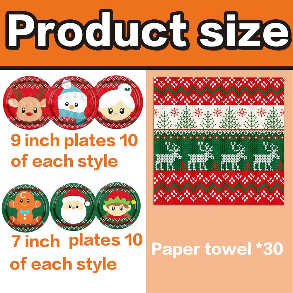 🎄【Enjoy the Party】Our Merry Christmas party ugly sweater tableware disposable supplies reduces cleanup time, so you can enjoy more time with friends and family. It is easy to clean up and save time when the party is over, very convenient and release your hands.