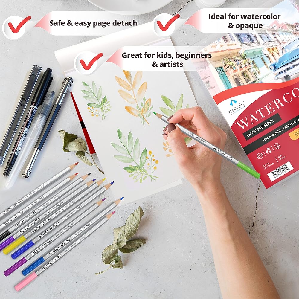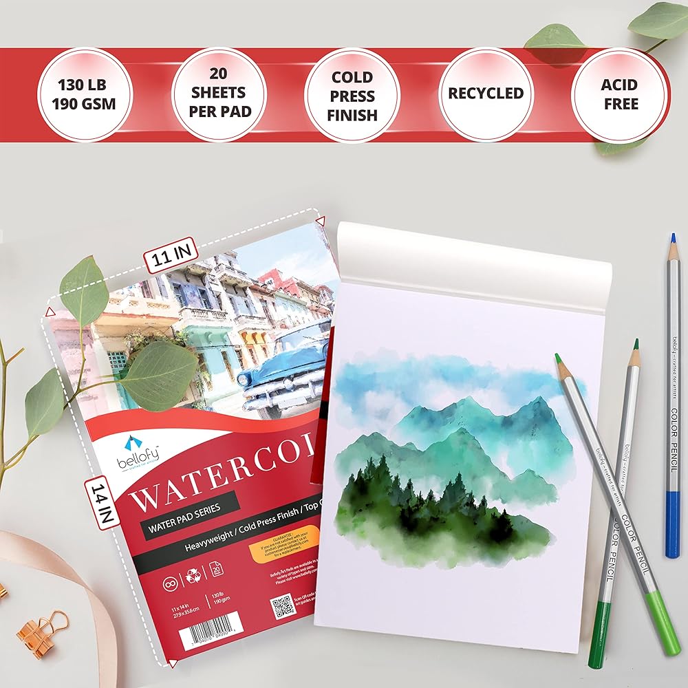 Bellofy Large Watercolor Paper Pad in Set of 2 | 11x14 in Academy Watercolor Paper Kids, Artists & Beginners Enjoy | Watercolor Notebook for All Watercoloring Techniques