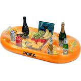 INCLUDED WITH THE PURCHASE OF INFLATABLE COOLER - Includes 1 POZA Gold Floating Drink Holder for Pool filled with Gold Confetti and designed with 2 handles and 8 holders for refreshments, drinks, ice, book, speaker, phones, tablet, etc. Use the electric air pump with our advanced quick air valve system to easily inflate or deflate the pool drink float. The floating pool cooler measures 39Lx23Wx7H inches and comes with a repair patch.