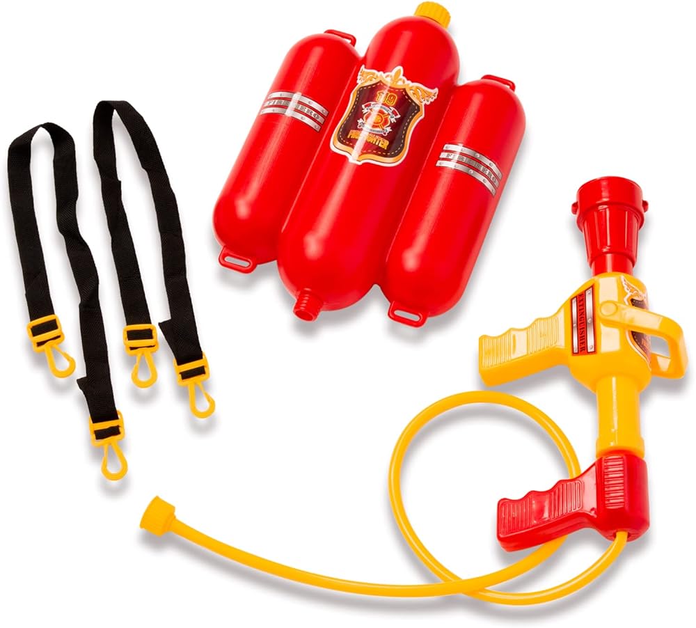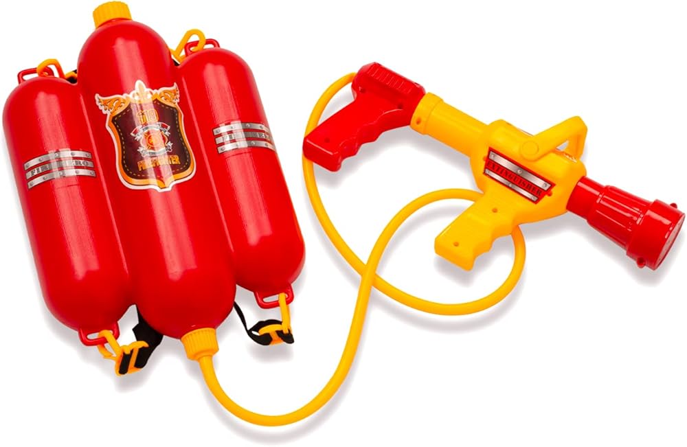 This 2 pack Fireman water blaster includes 2 water blaster and refillable Fireman water backpack tanks. This is the perfect toy to have a water fight with your friends or family. The water blaster shoots water very far so it is the perfect accessory for pretending to be a real firefighter extinguishing a fire. This backpack water tank is easily refillable and holds a large amount of water at a time, so you don't have to constantly refill. It is the perfect toy for kids of all ages to enjoy outdoor summer fun! It is great for the beach, outdoor water activities, pool fun, backyard activity, pretending to be a real firefighter and so much more! The backpack is very durable and has adjustable straps to be able to fit all ages comfortably.