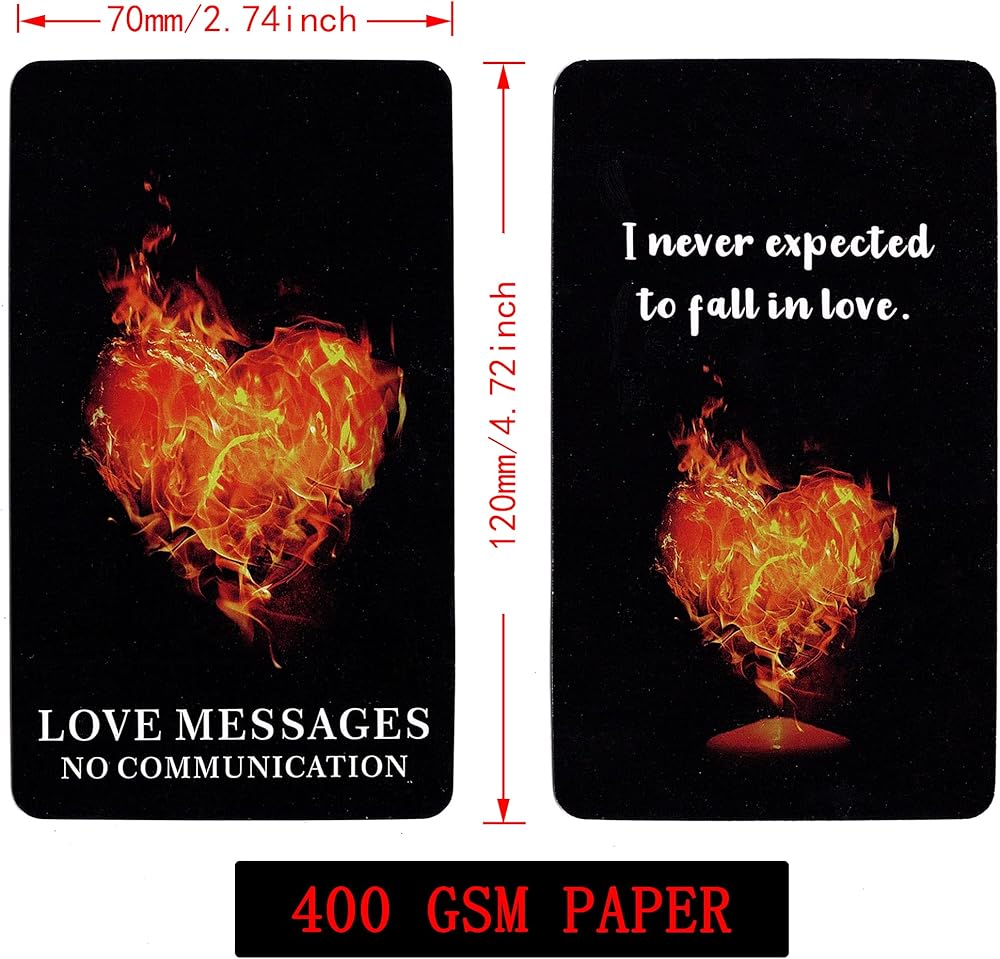 🔮【400 Gsm Coated Paper】Tarot size: 2.75" x 4.72" (70 mm x 120 mm),It has 50 sweet/positive messages in Color, and 30 negative or regret messages in no movement in Grey colors. Find out how they really feel using this deck!