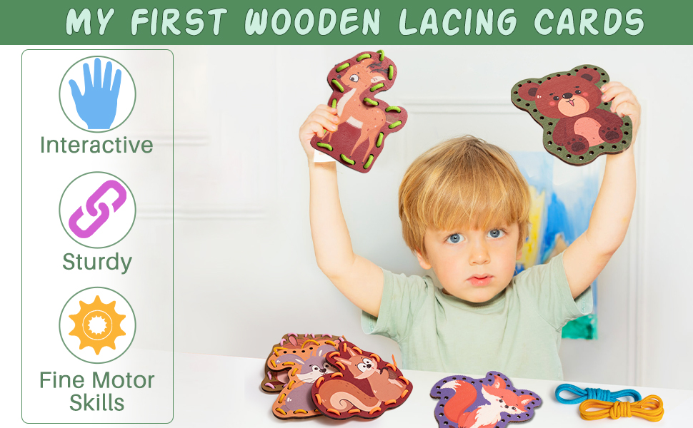 🎁【Awesome Gift for Kids】🎁Our Wooden lacing card is the top toys gifts for toddlers suitable for any situation, such as birthday gifts, Easter gifts, holiday presents, daily toys. Don't miss any chance to surprised your kids.
