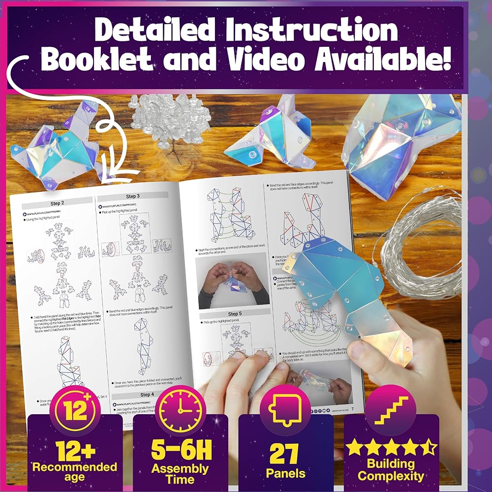 A Challenging Build for Tweens, Teens, and Parents! The Prismic Unicorn Lantern is a craft best built together, so you will share quality time with your older kids and foster meaningful connections through crafting. Completing the Prismic Unicorn Lantern will take a few sessions, but the final masterpiece is truly rewarding!