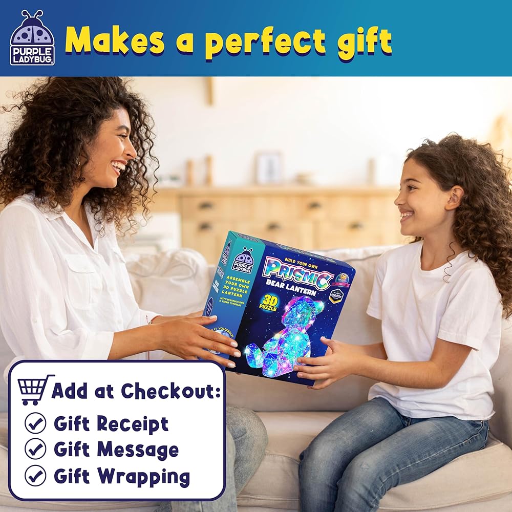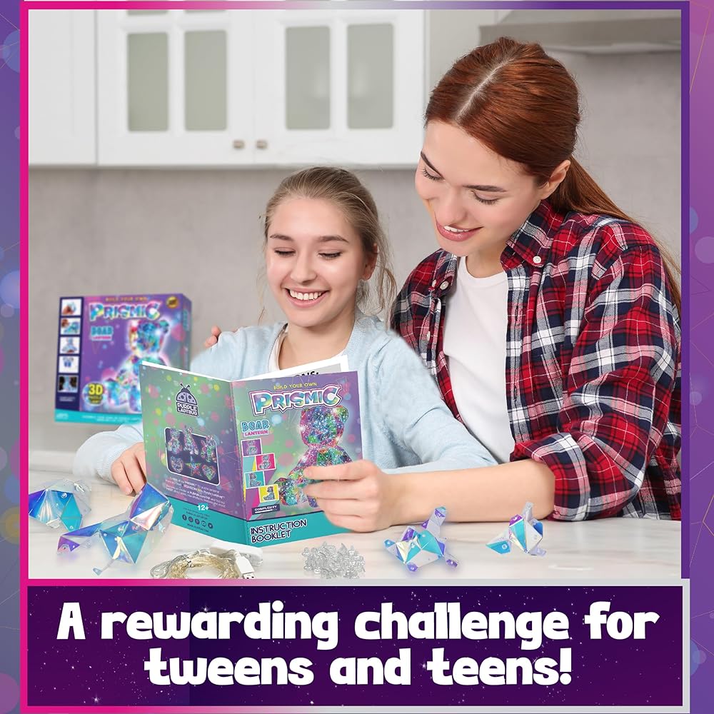 PURPLE LADYBUG Prismic 3D Bear Puzzle Nightlight - DIY LED Craft Kit for Kids & Teens, 8-12 Year Old Gifts for Girls & Boys, Valentines Gift Light-Up Decor, Room Decor for Boys & Girls