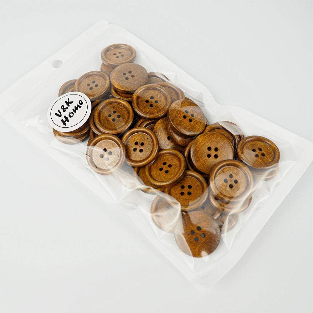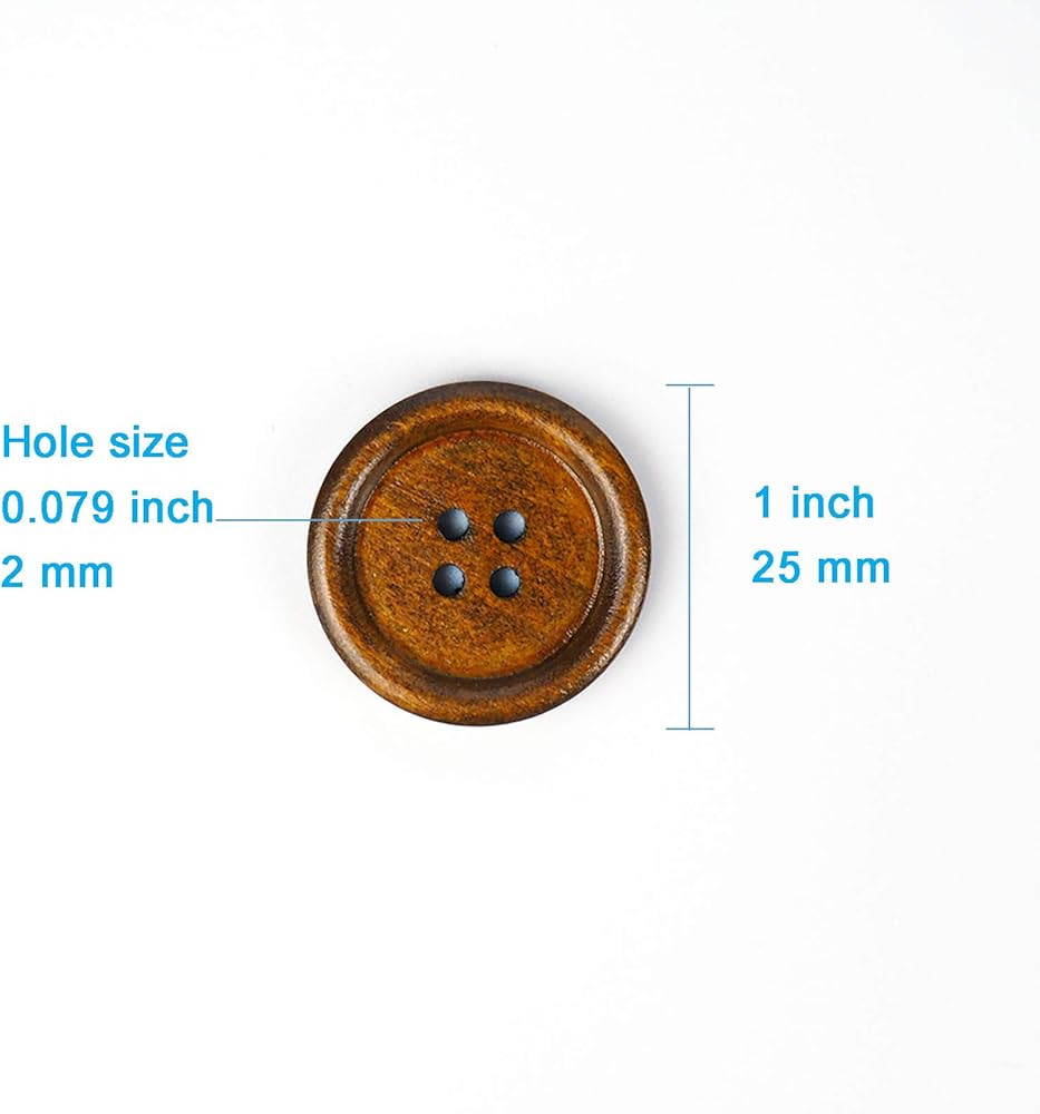 【1】Size: 50 pcs of 1 inch (25mm) wooden buttons with the 4 holes about 0.079 inch (2mm), easy to pass the thread through.