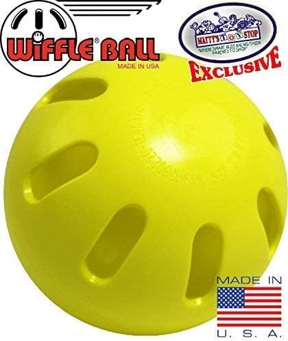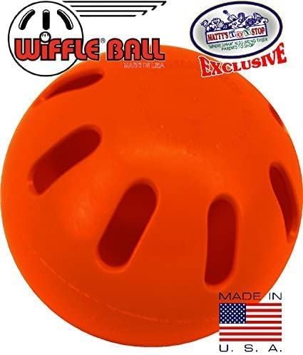 WIFFLE Balls Green, Orange & Yellow Official Size Baseballs Matty's Toy Stop Set Exclusive Colors Bundle - 12 Pack (4 Green, 4 Orange & 4 Yellow), is AWESOME! This set includes 12 high-quality Wiffle balls in vibrant colors, perfect for endless hours of outdoor fun. With 4 yellow balls, 4 green balls, and 4 orange balls, you'll have plenty of options to mix and match during games and activities. These Wiffle balls are designed with precision and durability in mind. Crafted from durable plastic material, they are built to withstand vigorous hits and throws, ensuring long-lasting use. The lightweight construction allows for easy handling and improved control, making them suitable for players of all ages and skill levels. Whether you're organizing a backyard game, practicing your swing, or playing a casual match with friends and family, these Wiffle balls provide the ideal balance of performance and safety. Their hollow design offers a unique flight pattern, allowing for impressive curveballs and exciting gameplay. Additionally, the Wiffle balls come in a convenient pack with a variety of colors, making them easy to spot during play and adding an extra element of excitement. Take them to the park, the beach, or any outdoor space, and get ready for endless entertainment. Enhance your outdoor activities with the Wiffle Ball Set - 12 Pack. Experience the joy of hitting home runs, mastering your pitching skills, and creating unforgettable memories with friends and loved ones. Order your set today and let the games begin! Made in the U.S.A. out of a high-quality plastic, uniquely designed for slower flight, which makes them safe for children to play with indoors and outdoors. These super safe Wiffle Balls are perfect for kids of all ages! For Ages 3 and up.