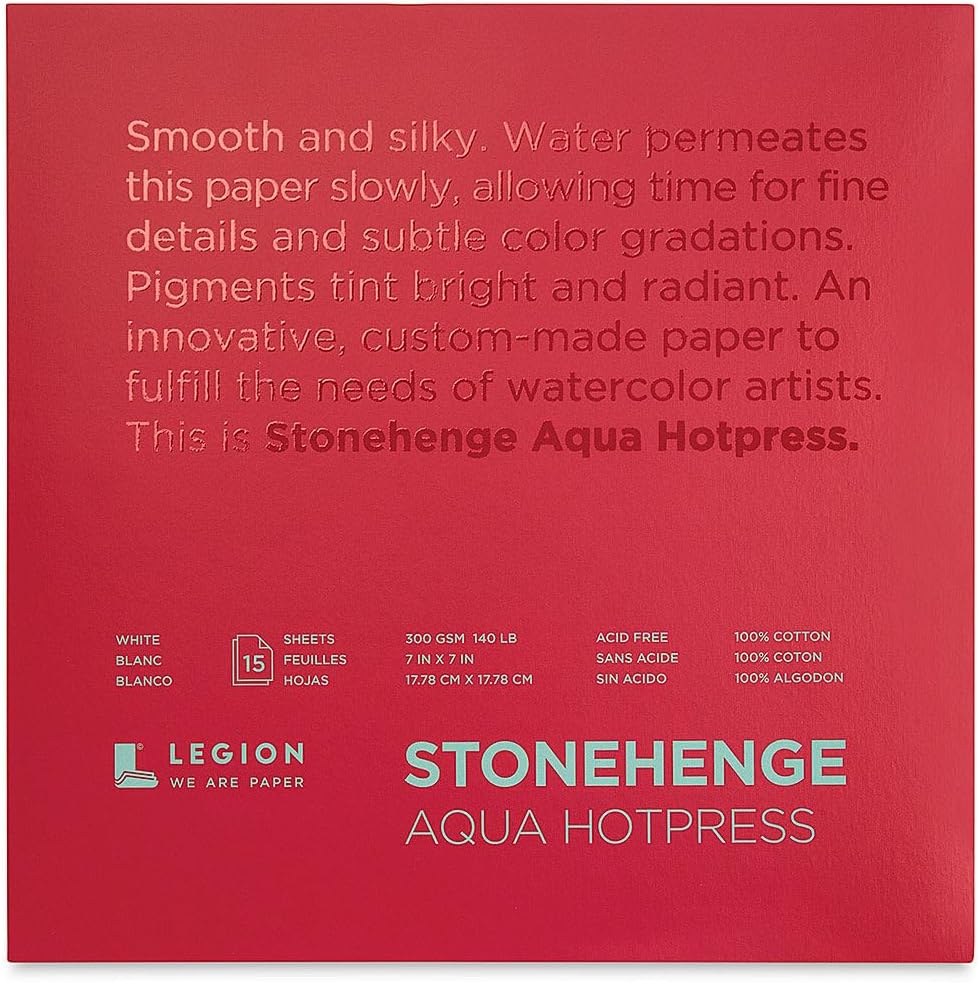 Stonehenge Aqua is finely crafted and affordable. Wet-on-wet or wet-on-dry, it has a wonderful crispness that anchors beautiful work across every task and technique. Excellent for blending, lifting, and masking. Bright colors dry bright. Paper dries flat. 140 lb. 9" x 12". 12 Sheets