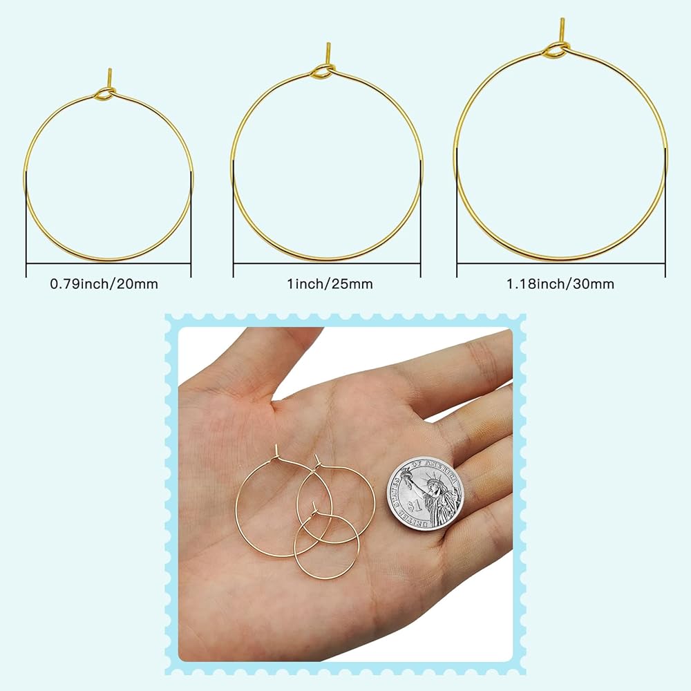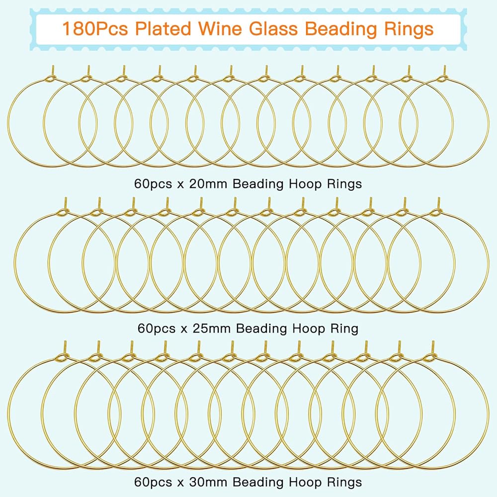 Package Includes:Comes with 180Pcs plated beading hoops,there are White K and KC Gold,they are 3 sizes,60 Pcs each sizes,you've got enough this DIY craft supplies to make your wine glass charm and your own jewelry earring.