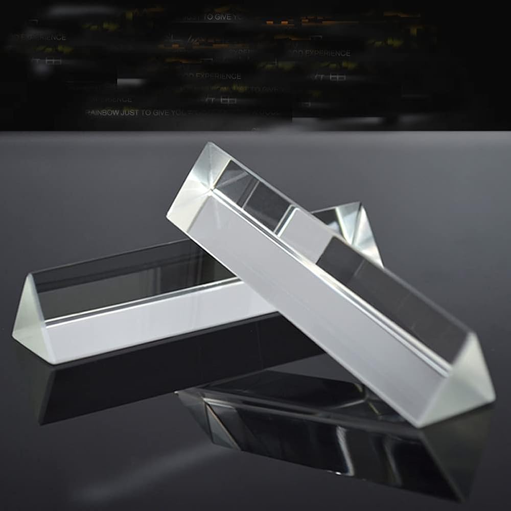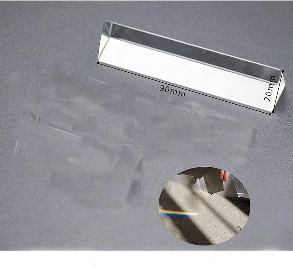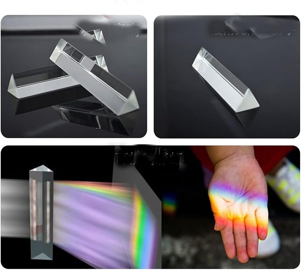 Package:2pcs Optical Glass Triangular Prism 9cm/3.5inch Crystal Rainbow Maker Material:optical glass Size:approx 9cm/3.5inch in length,2cm/0.8inch in side length Made of premium optical glass, the triangular prism is crystal clear for you to use this equilateral prism to split a beam of light into spectral components. The Triangular Prism is not only clear,beautiful and can be a decoration.But also can provides rainbow color light effects for you to take unique photos.Show wonderful rainbow optical effects for your kids or students, so you can explain these great natural sciences to them. Use this equilateral prism to split a beam of light into its spectral components (the colors of the rainbow).Show your kids a rainbow, or use our prism for photography to create unique pictures.