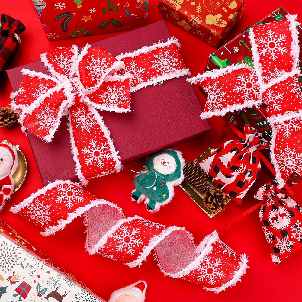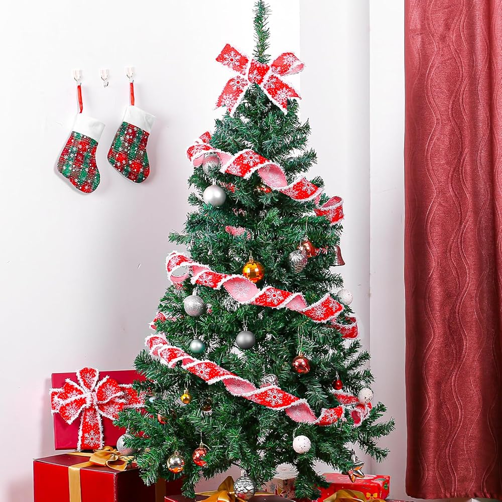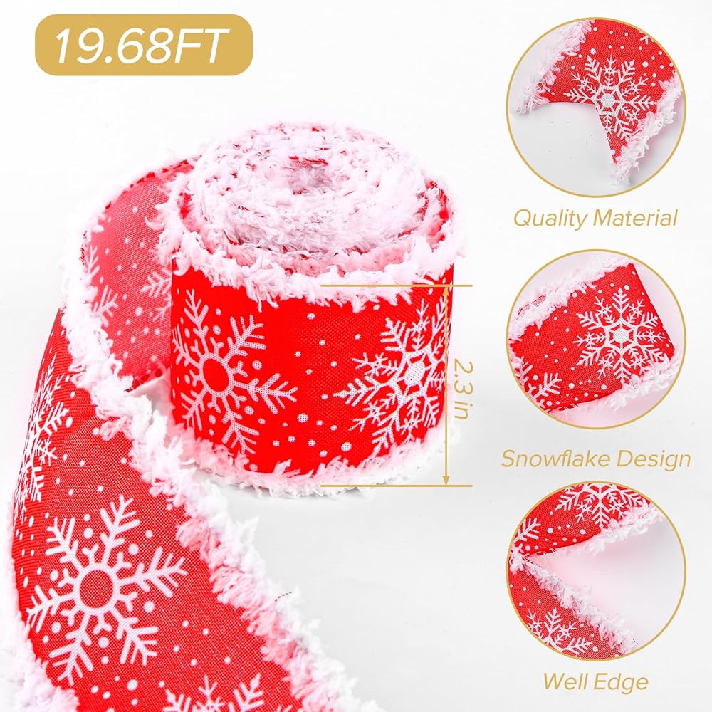 Size:The red snowflake ribbon is 19.68ft long and 2.3 inch wide.