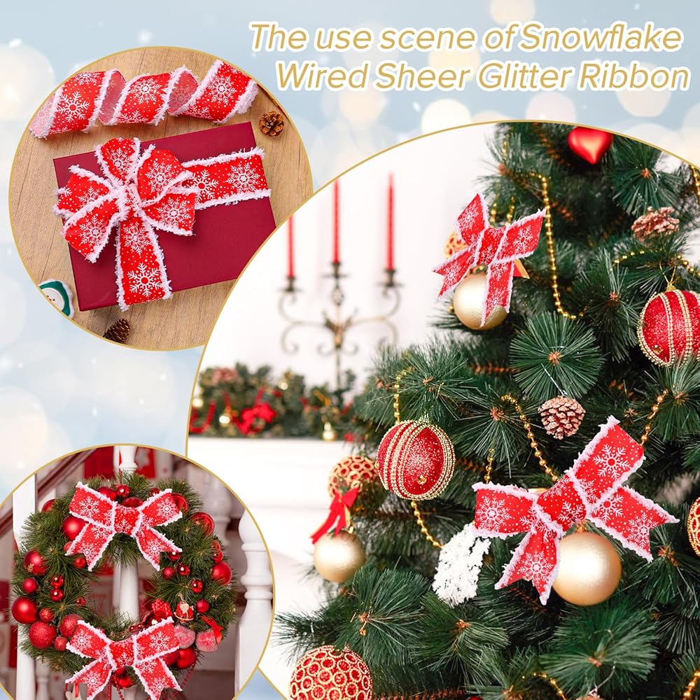 Wide Application:The glitter snowflake ribbon can be used for Christmas tree,Christmas gift packaging,wreath,bow making and DIY crafts.