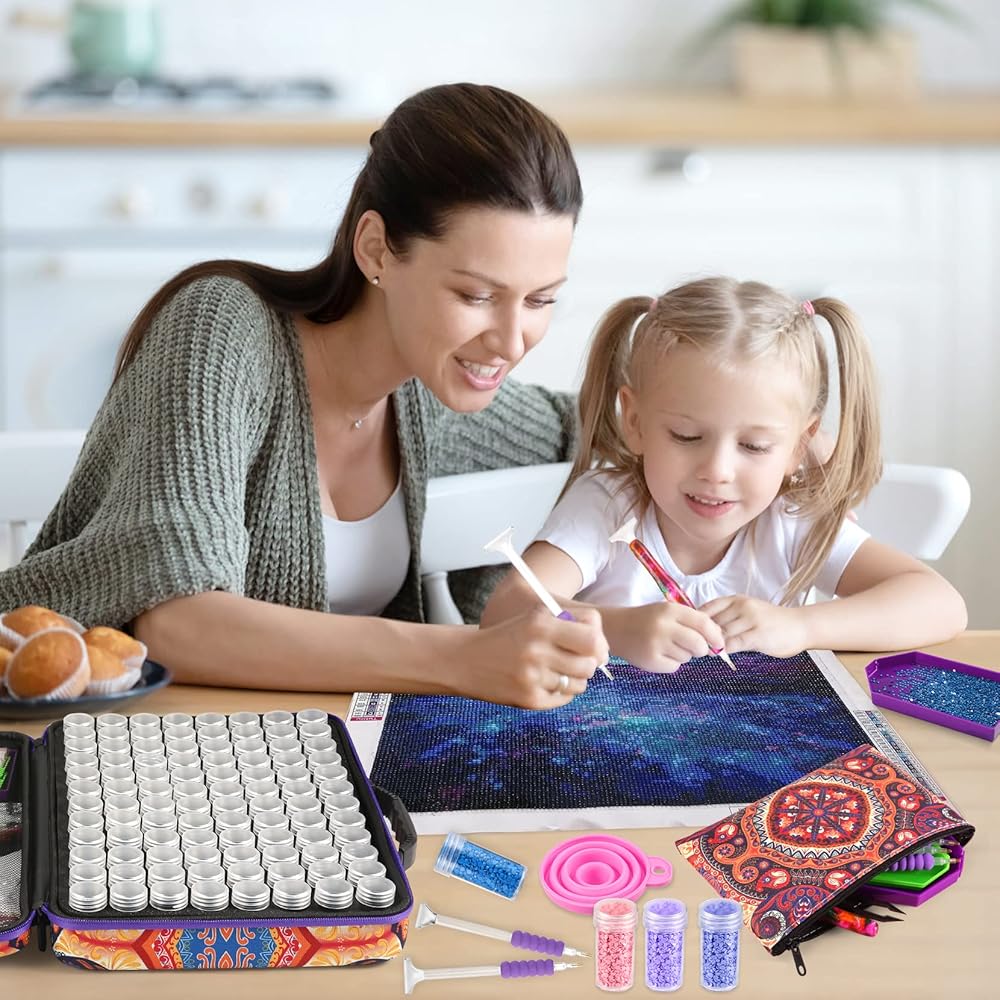 Diamond Painting Storage Containers: There are 60 bottles of diamond storage bottles with foam bases, which can store a large number of diamonds, jewelry beads, pendants, glitter, nail decorations etc. A mesh pocket can perfectly manage all painting tools for you and save space.
