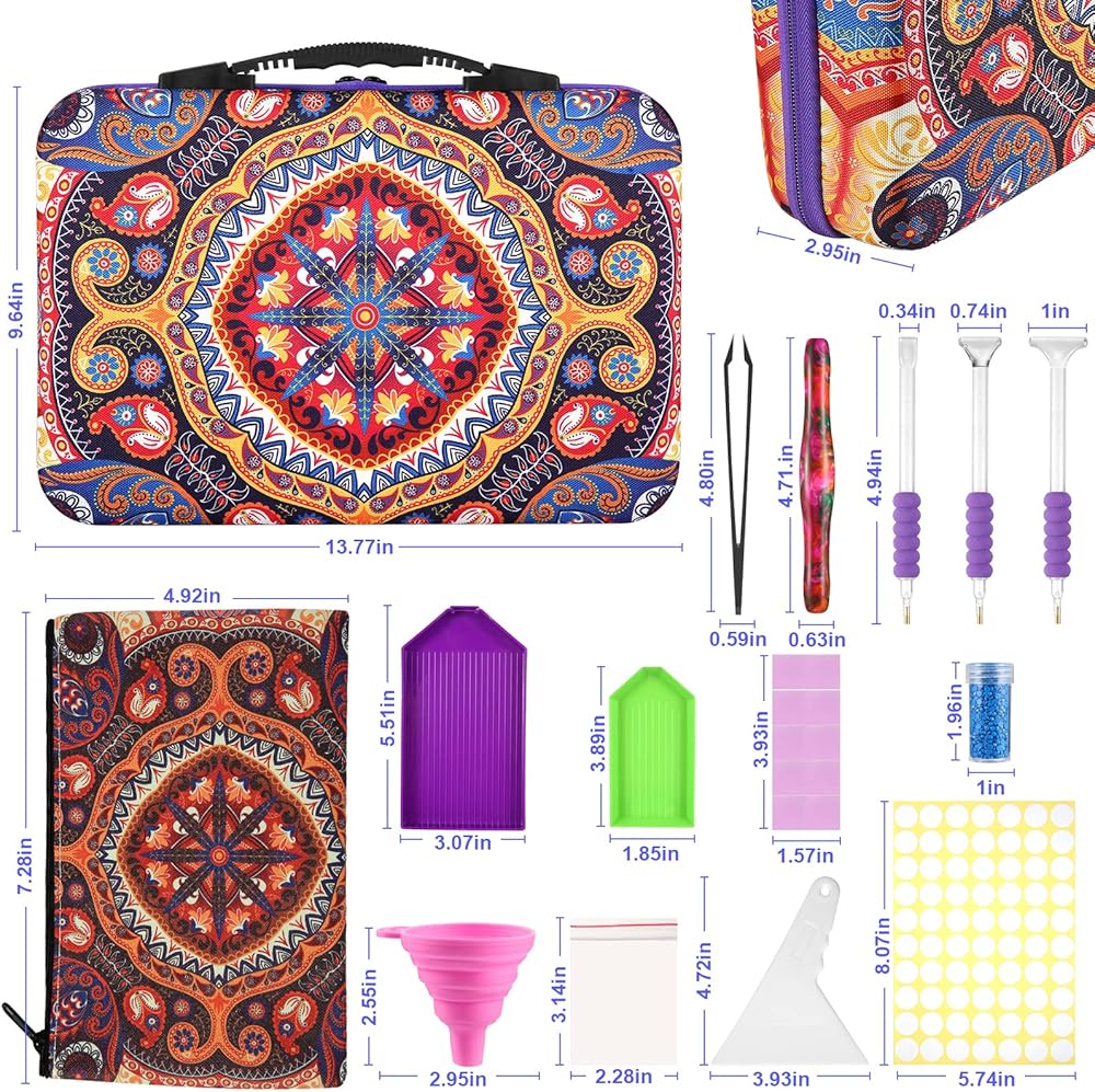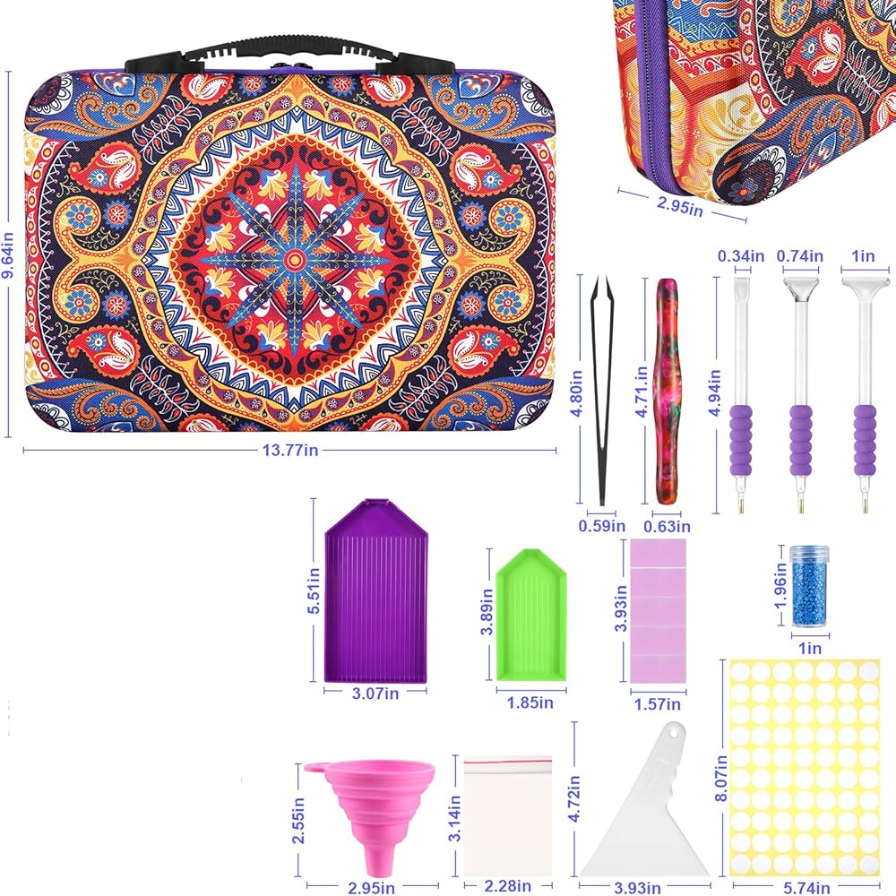 Stylish and Portable: The beautiful pattern is pleasing to the eye, and the handbag design with two-way zipper makes it more convenient for you to travel and carry. It is a perfect diamond painting tool bag that diamond painters want to get. Let you can complete your diamond painting while traveling.