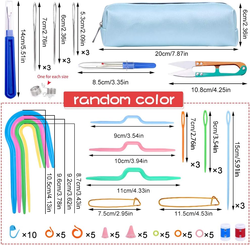 Package Included: Totally 18 PCS Knitting Stitch Holders, including 6 sizes, 2.36''/6CM, 3.54''/9CM, 4.72''/12CM, 5.9''/15CM, 6.69''/17CM, 7.87''/20CM, 100 knitting stitch counter, enough amount for you to mark the crochet knitting needle stitches, satisfy all your needs.