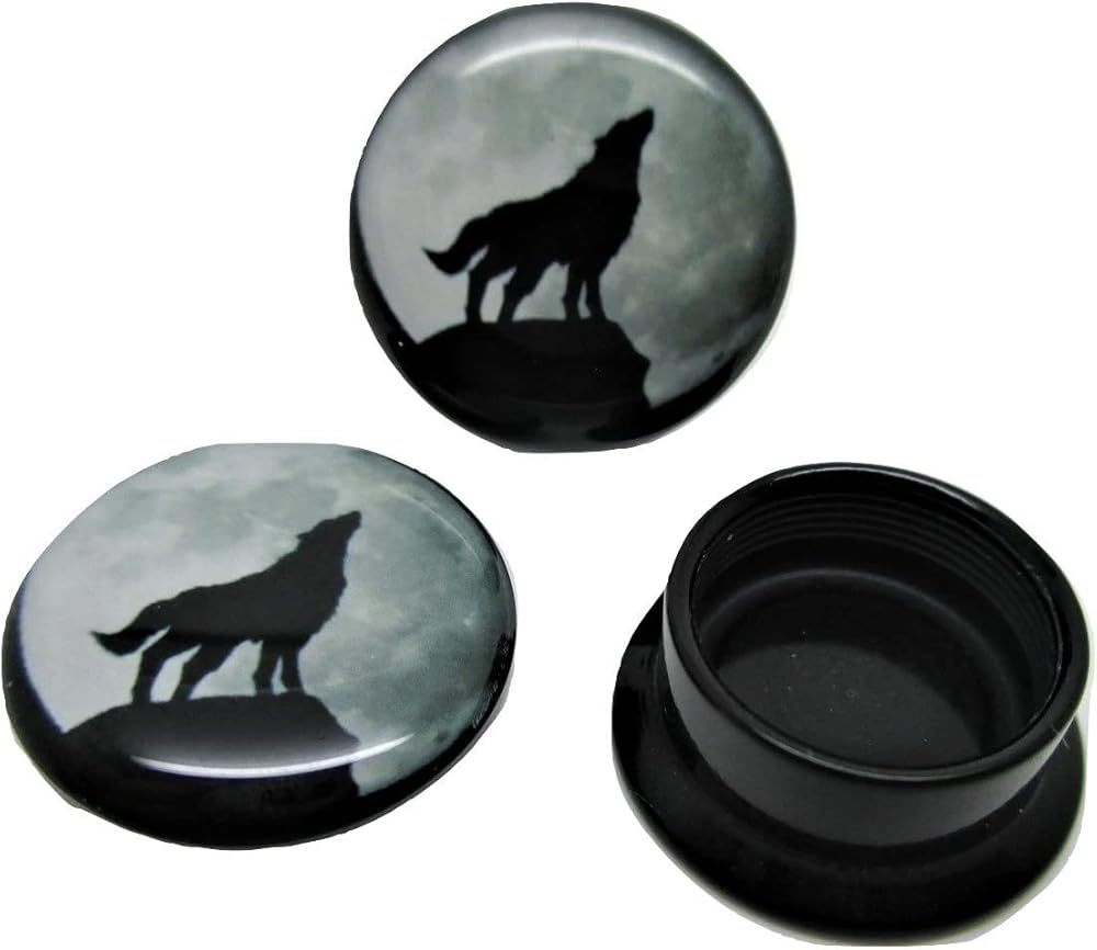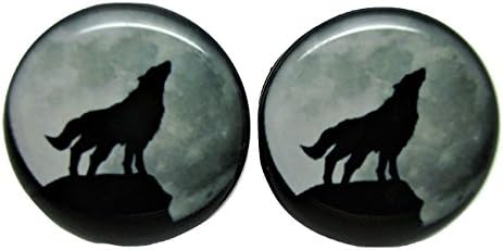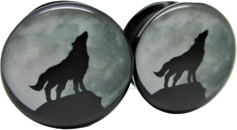 Brand New, Pair of Wolf Howling at the Moon Acrylic Screw-on Ear Gauges 8 Sizes (4mm-16mm) 6 Gauge (4mm) 4 Gauge (5mm) 2 Gauge (6mm) 0 Gauge (8mm) 00 Gauge (10mm) 1/2" (12mm) 9/16" (14mm) 5/8" (16mm)