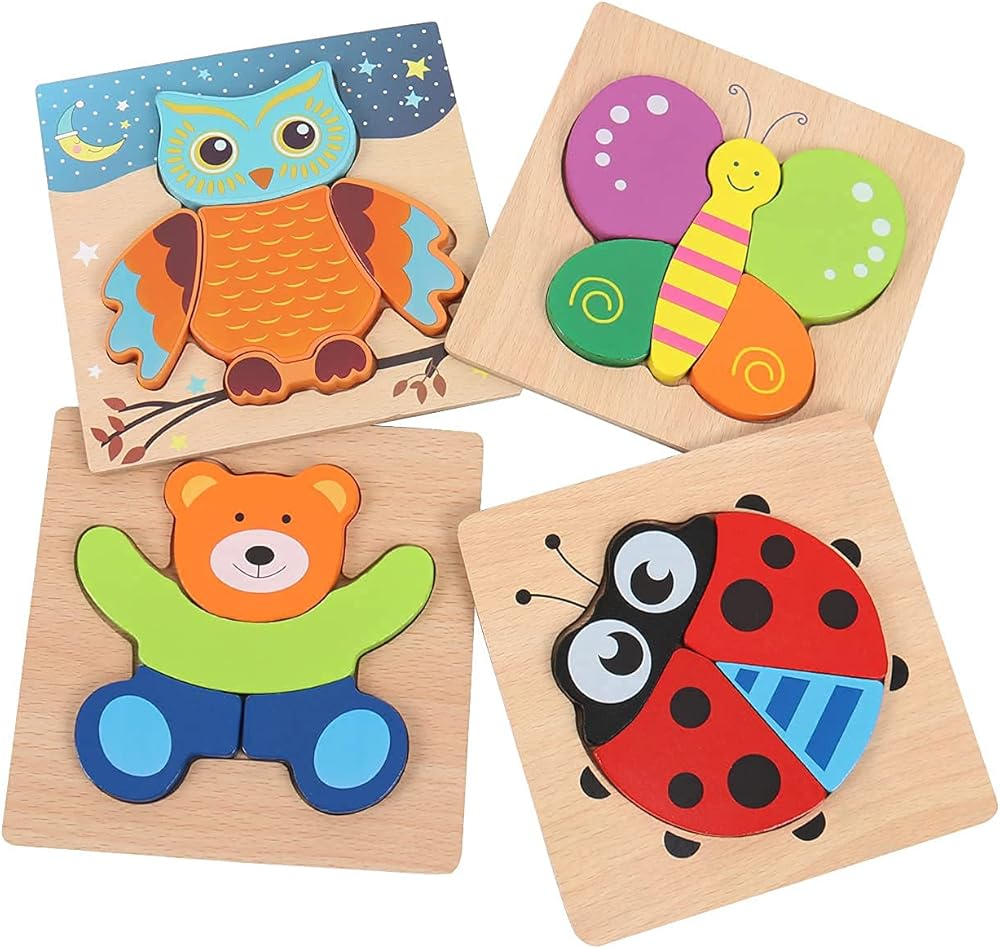 AOLIGE 4Pcs Wooden Jigsaw Puzzles Animal Educational Toys for Toddlers Kids Montessori Toys for 1 2 3 Year Old Boys Girls Pegged Puzzles 1 2 3 Years Old