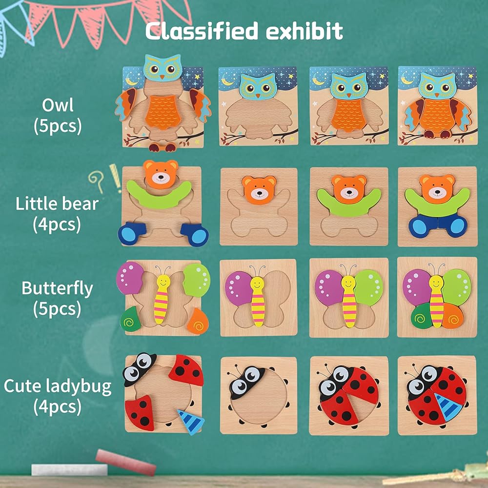 ★ [Safe and interesting puzzle]: BPA-free, high-quality environmentally friendly wood, water-based paint. Easy-to-grip parts and smooth edges allow boys and girls over 3 years old to play safely.