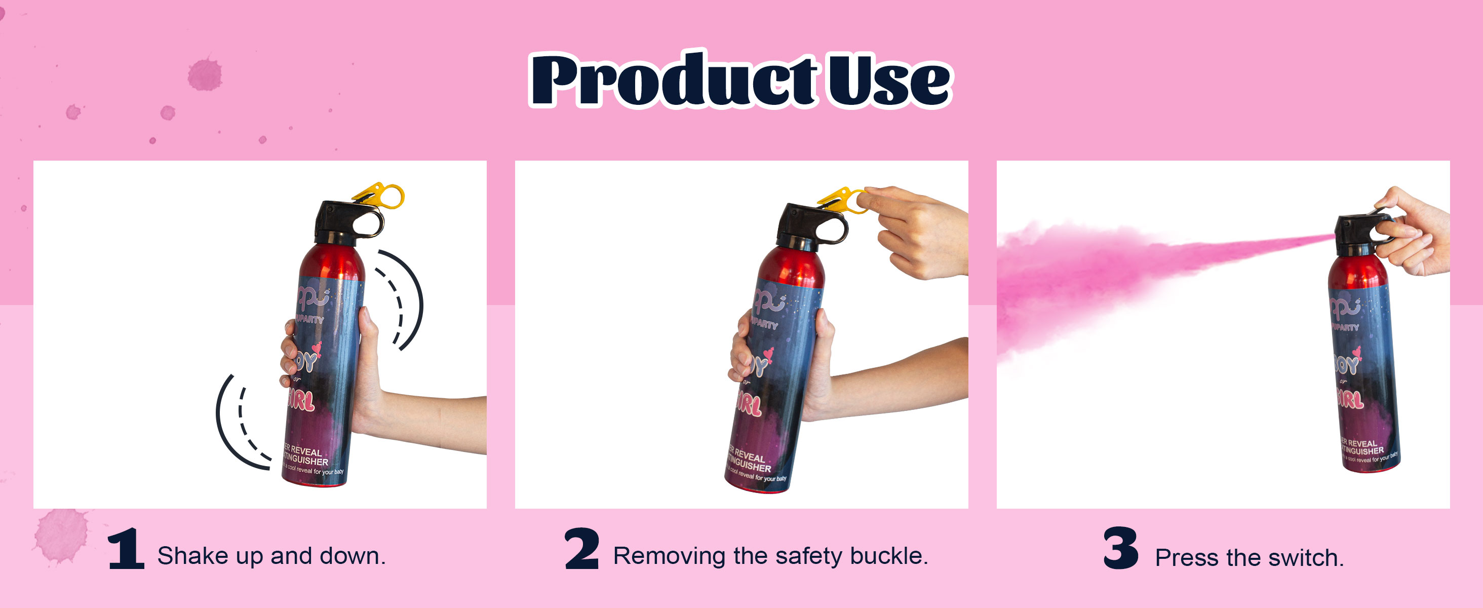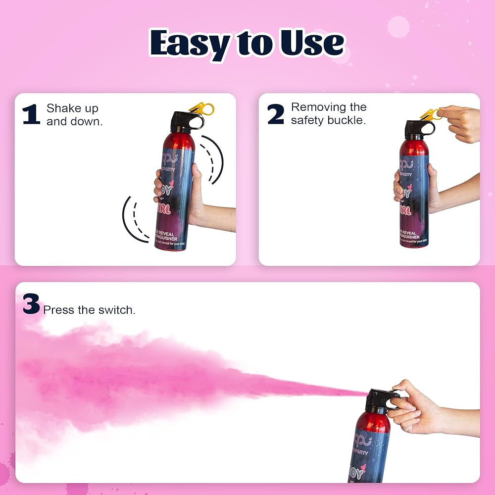 What Will You Get - 2 gender reveal fire extinguishers - 2 pink, each is loaded with 0.77 lb of color powder. Make your special moment an unforgettable one! If you are not satisfied or encounter any issues with the product, please reach out to us. We'll ensure a full refund for you.