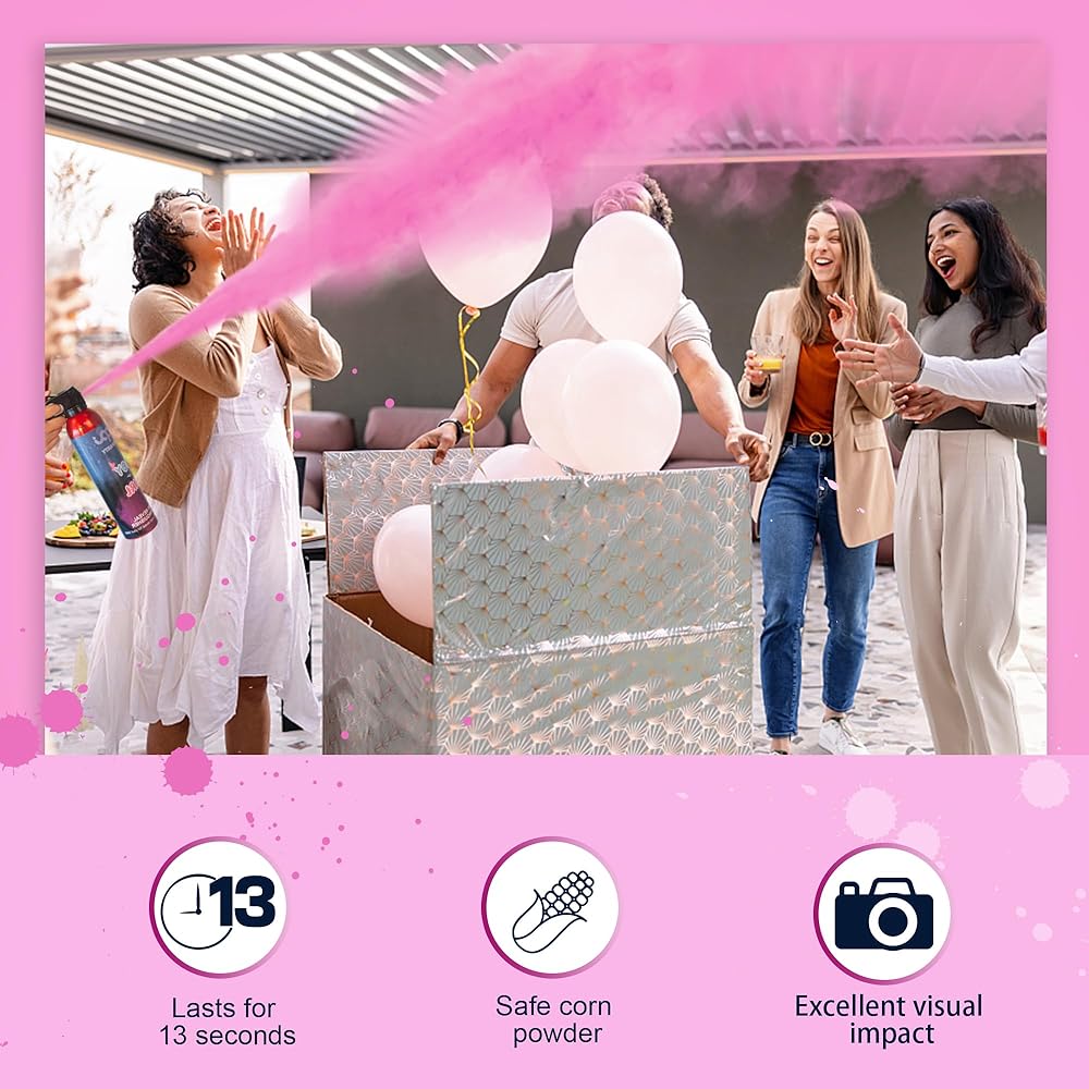 Last 13 Seconds - Each extinguisher holds 0.77 pound of safe colored powder and will shoot up to 10 feet into the air, giving you an enthusiastic climax to your gender reveal like no other.