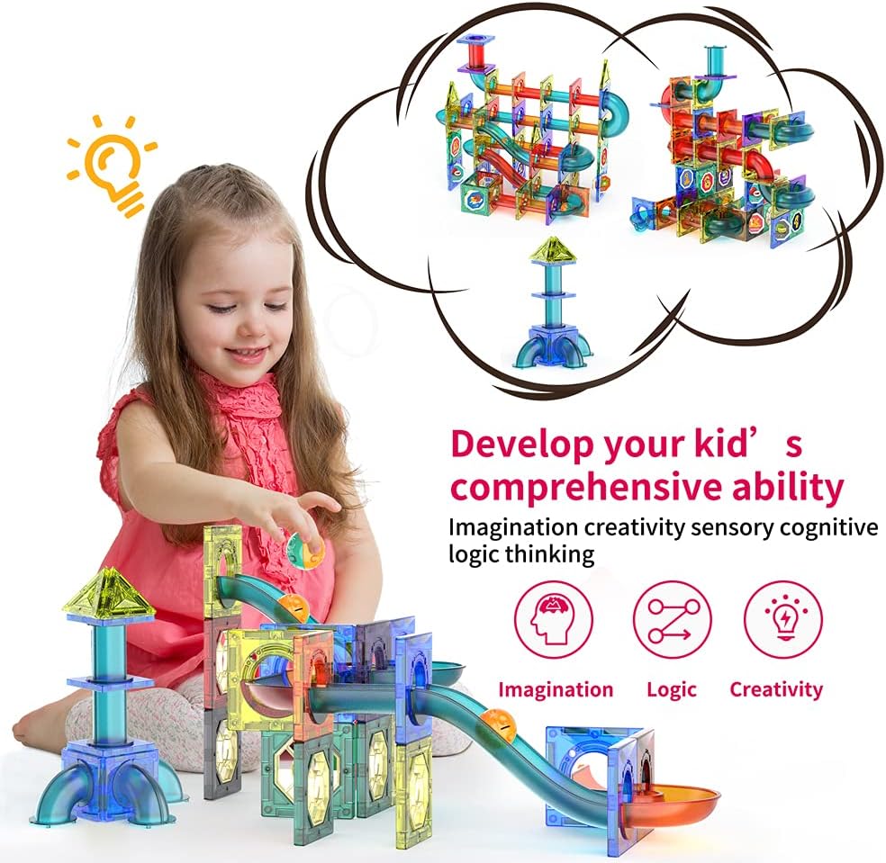 【Best Gift & Kids favorite】Ideal gifts for children above the age of 6 years at family,kindergarten and preschool ,can be sent for birthday,back to school,Christmas,summer holiday etc.Not only will this magnetic tiles marble run toy bring kids a lot fun and happiness,but also it will exercise mind of kids and improve their problem-solving ability.Please feel free to contact us if any problem about the products.