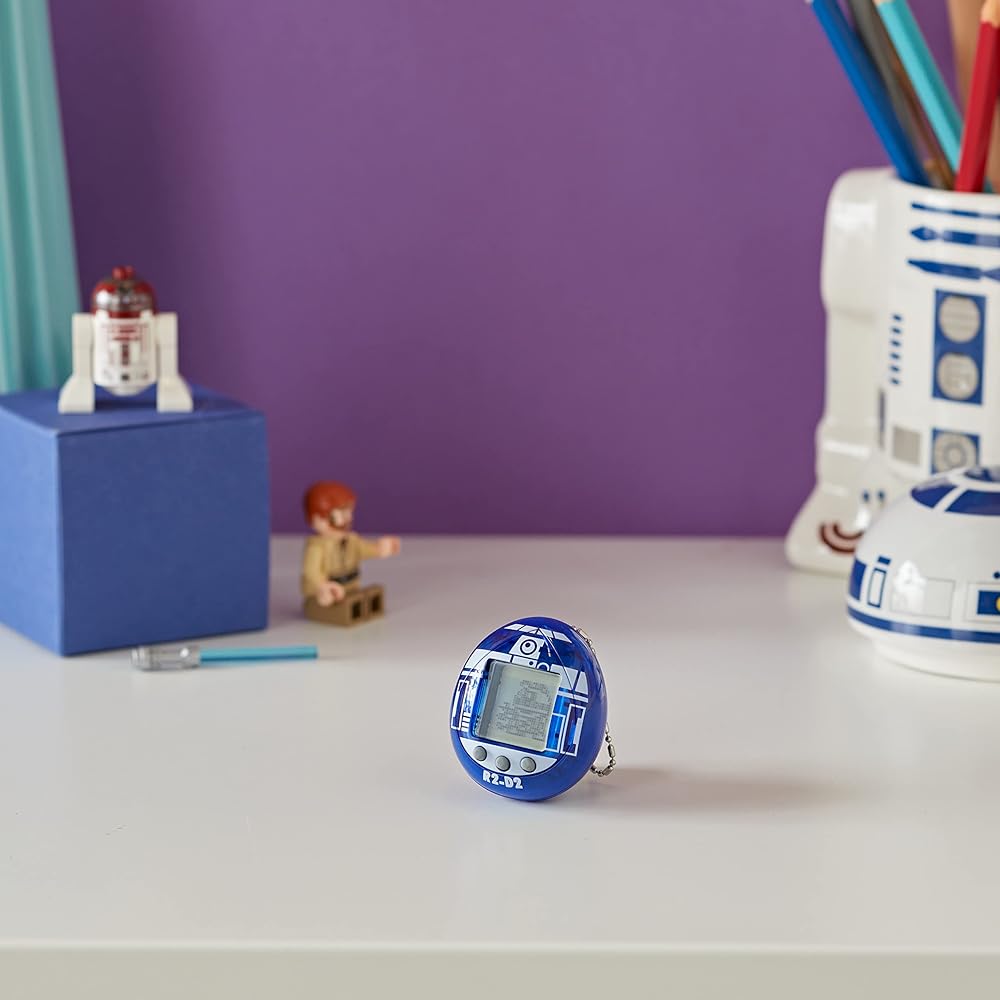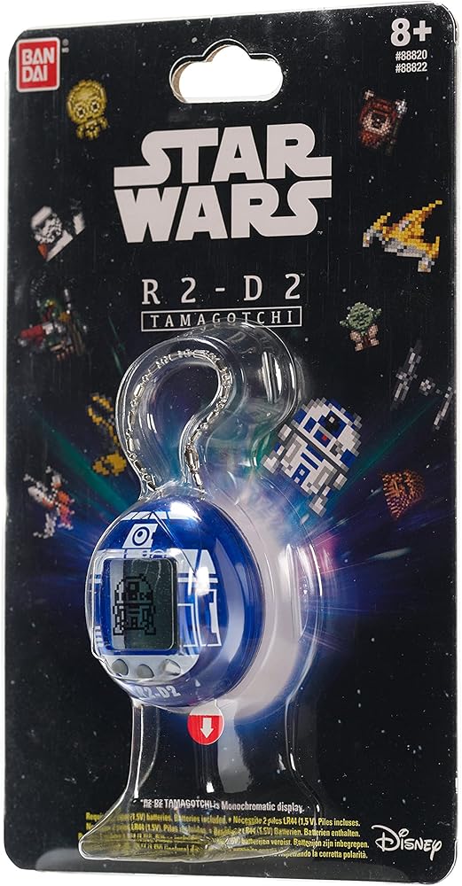 Star Wars meets Tamagotchi with this new take on the nostalgic 90s toy that took the world by storm. Care for your very own heroic little Star Wars droid by keeping R2D2 clean, happy, charged up, well-rested, trained and ready for all the adventures you'll be having together - don't neglect little R2 or the Jawas will come and take him away for scrap! With 9 different mini-games to choose from like Match X-wing and Catch the Lightsaber, special modes that let your R2 show off it's 19 different skills, and even 5 starfighters for it to co-pilot with you, there's no limit to the trouble your digital companion can get you both into. If that's not enough, you'll also be able to meet some of your favourite Star Wars characters in the various modes, games, and specially animated scenes that we've packed into this handheld retro toy. The perfect Star Wars gift for fans of the franchise, we're confident that these are, in fact, the droids you're looking for. Comes with a clip chain for easy attachment to keyrings, belt loops or bags, and batteries included.