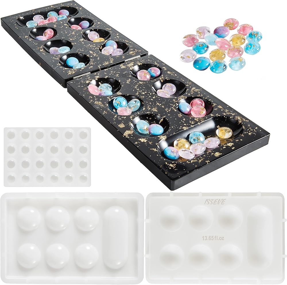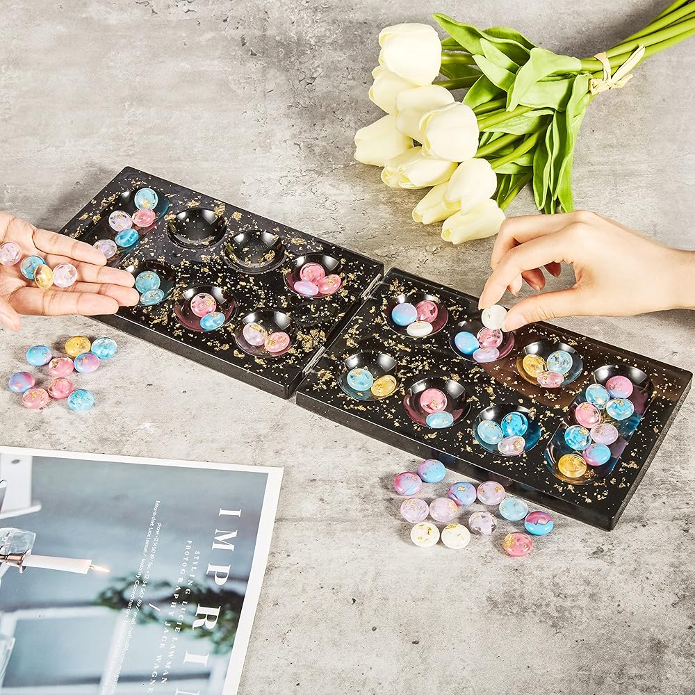 【Epoxy Silicone Molds for Resin】- These mancala board game resin silicone molds set are made of durable silicone by advanced techniques.With the flexible, smooth and reusable epoxy molds, soft and light, you can use, de-mold and clean them easily.