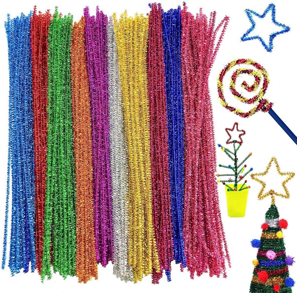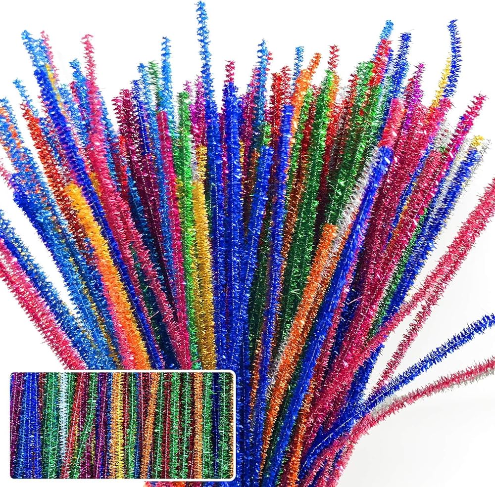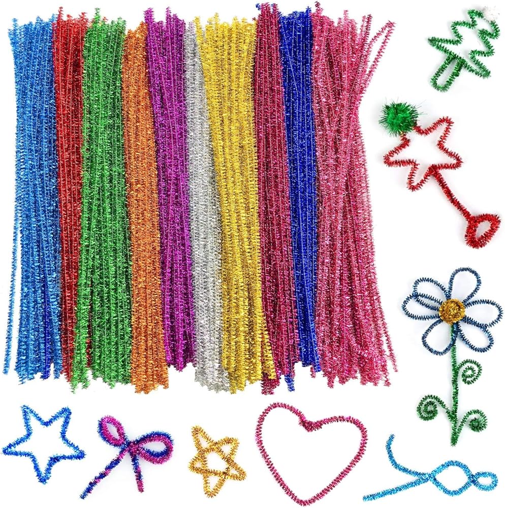 300Pcs Glitter Pipe Cleaners Tinsel Chenille Stems,10 Colors Metallic Pipe Cleaner for Creative Crafts Decorations,Tinsel Chenille Stems for for DIY Crafts, 6 mm x 12Inch