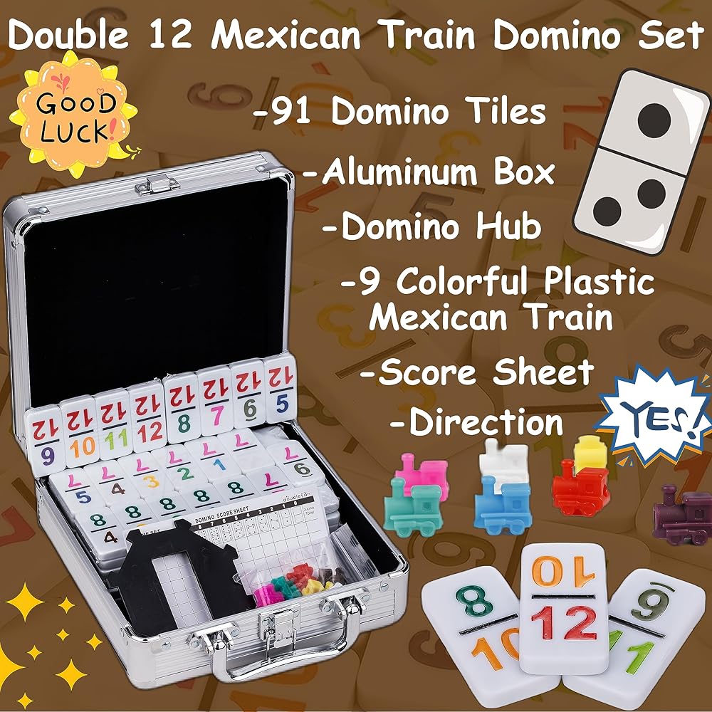 【Mexican Train Domino Set】Suitable for 2-9 players, Experience the joy of Mexican Train Dominoes! Simple instructions make it easy for 2-9 players to play together. Bring the whole family closer with laughter and fun