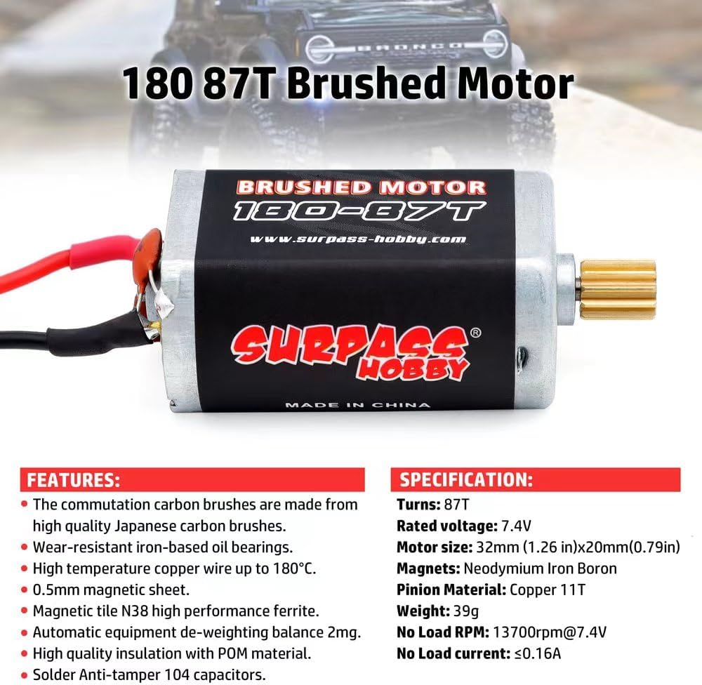High-strength neodymium magnets, high torque magnet and rotor, great control for crawling, the brushed motor is compatible for TRX4M 1/18 RC Crawler Upgrade