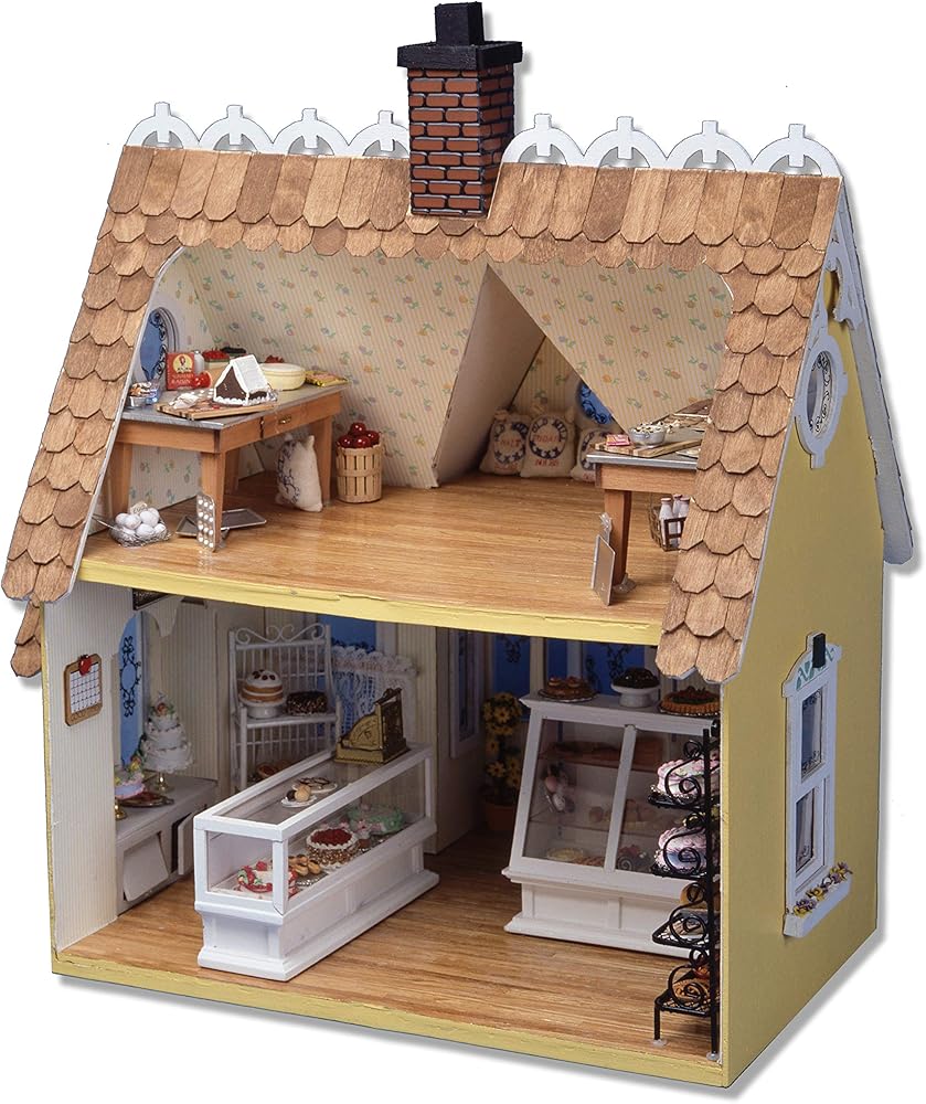 Delightful, charming, enchanting, adorable. That's the Buttercup Dollhouse Kit- the ideal little dollhouse to create any type of shop, cottage, or even just a room setting. The bay window, silk-screened windows, gingerbread trim, and window boxes add to every decor. The Buttercup Dollhouse kit provides the setting, your imagination will provide the rest. The all-wood dollhouse goes together with tab and slot construction that requires only glue to complete assembly. Unpainted and unfinished, you can decorate, paint, wallpaper, and furnish this heirloom-to-be with your own personal taste and style. This all wood dollhouse comes unassembled; approximate assembly time is a couple of hours. Shingles, Siding and Paint are not included. Assembled Dimensions are 17" W x 11" D x 18" H.