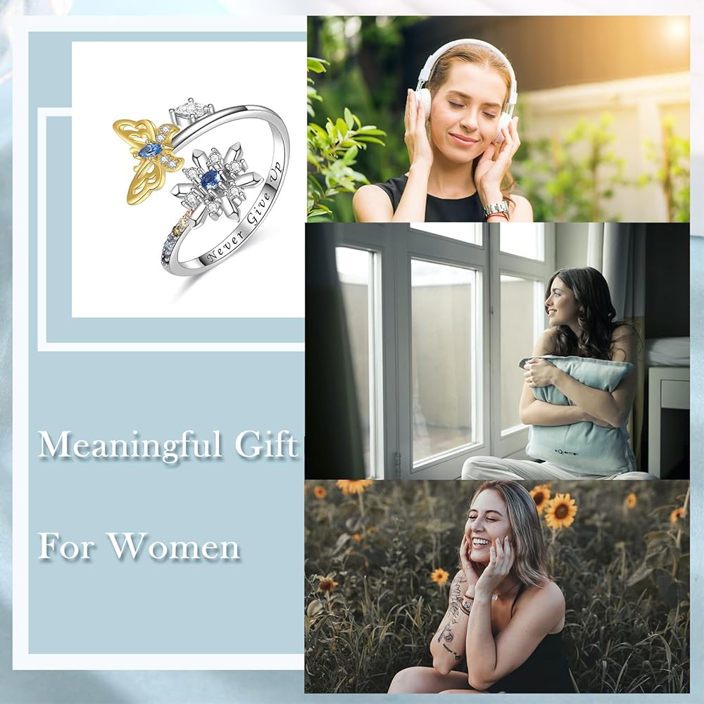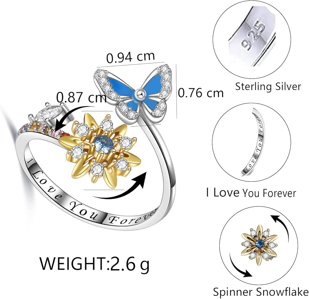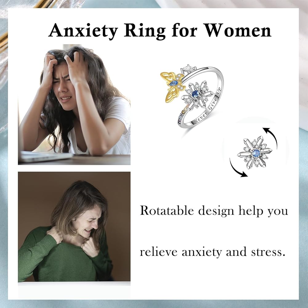 Spinner anxiety ring is a great gift to make people feel relax and happy. The shining snowflake ring is a best gift for mother, daughter, wife, teen girls, and couples. Suitable gift for Birthday, Mother's Day, Thanksgiving Day, Christmas, Valentine's Day, Anniversary, Graduation.