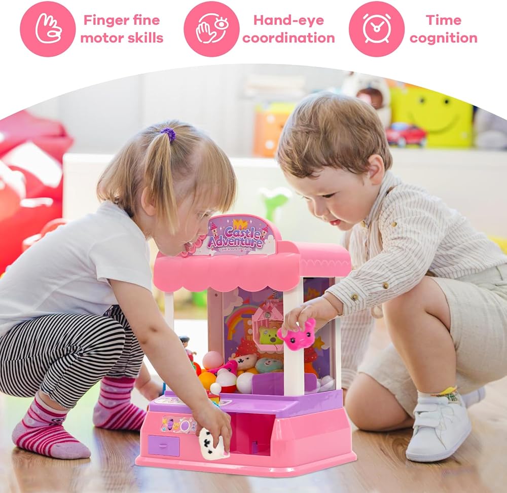 【Skill Development】it's a perfect game for improving hand-eye coordination and having more fun from interactive game! Our mini claw machine is a great party game that kids will absolutely love, which can improve hand-eye coordination, fine motor skills and concentration. And it can also build kid's confidence when they get success from claw game!