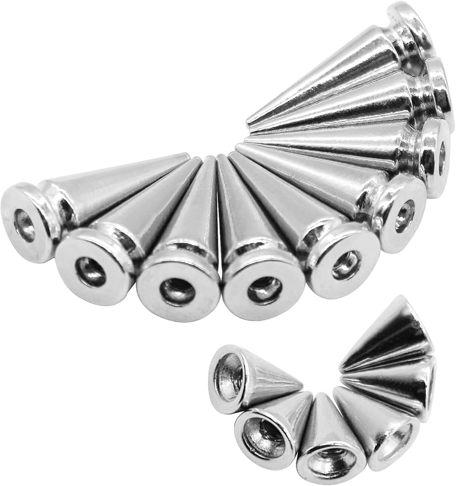 STURDY MATERIAL: Made of zinc alloy metal which is very durable for repeated use. Strong and wear resistant cone spikes with a smooth texture with no harm to your fingers while crafting, rustproof with the strong coating.