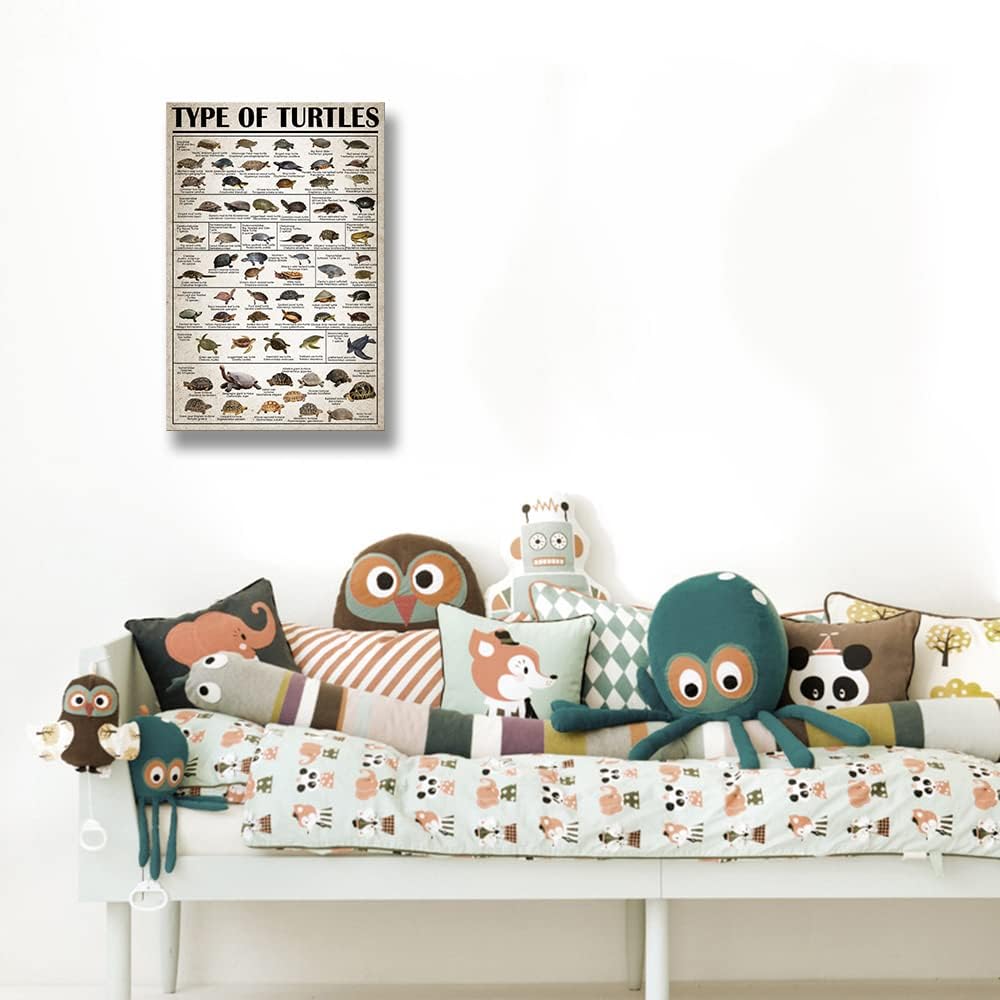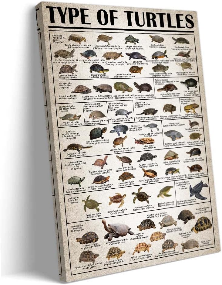 Turtle Wall Art Animal Framed Knowledge Posters Type of Turtles Painting Canvas Pictures Vintage Turtle Educational Wall Decor Prints Framed 12x18 inch