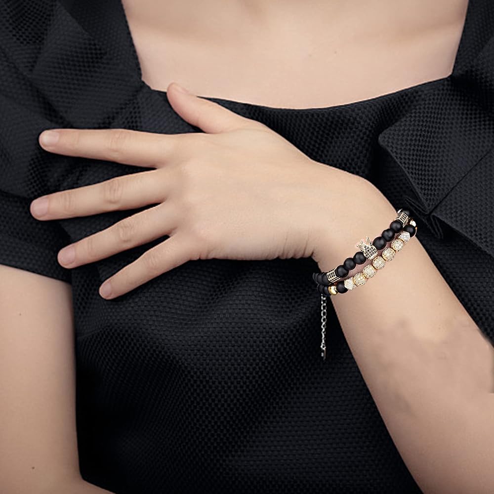 🎁【PERFECT GIFT】- Crown King Bead Bracelets As advertised good for gifts or for yourself, These charm beads bracelets will make you charmer and elegant, handsome and attractive. It is definitely an eye catching bracelet on your hand, unique bracelet jewelry for men wome,and these are the wonderful gift to friends, lovers, friends and family members. They will be happy to get such gift.