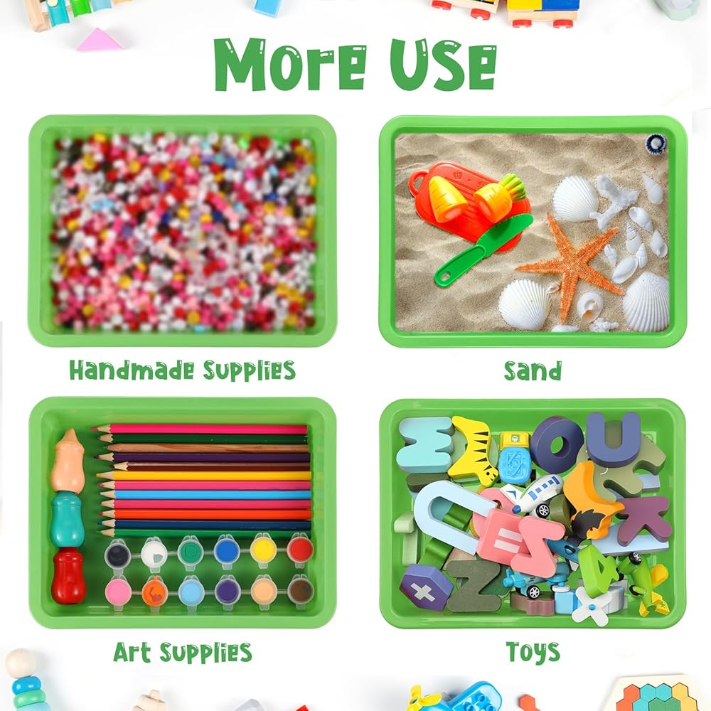 These craft trays for kids are suitable for painting, color mixing, organizing puzzles, beading, collage, science experiments, etc. This helps users organize and get rid of the mix, also suitable for DIY projects, scattered parts education, craft work.