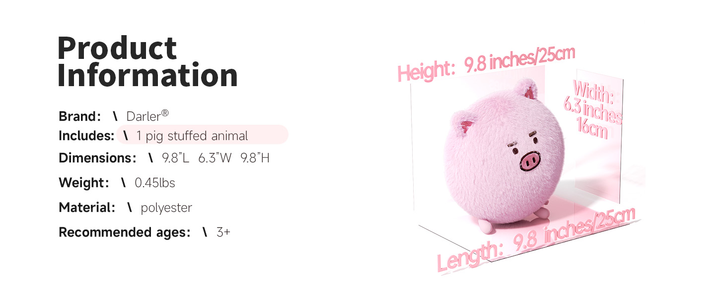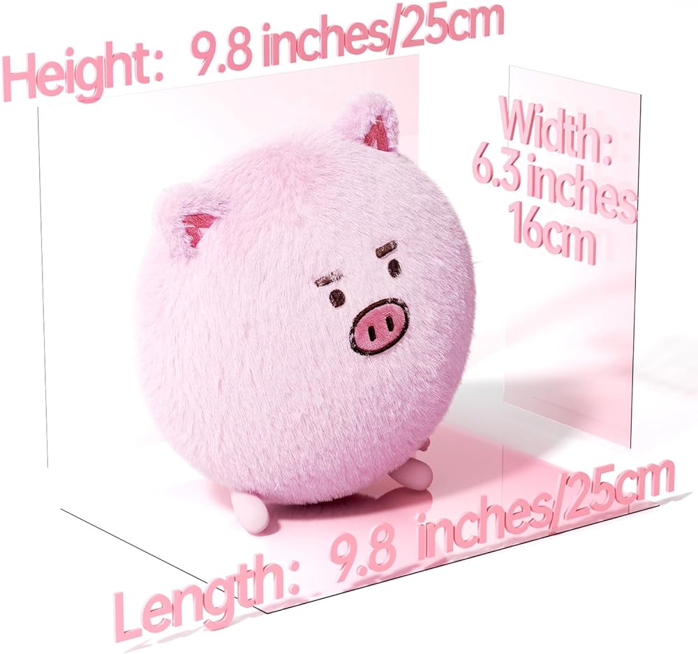This soft and cuddly pig stuffed animal is the perfect companion for anyone who needs a little extra comfort in their life. Its fur is fluffy and inviting, and 10in is a good size to snuggle up with on the couch or in bed. With its cute appearance, chubby body and short curl tail, it's hard not to feel a little happier just looking at it. So why not treat yourself to one today? You won't regret it!